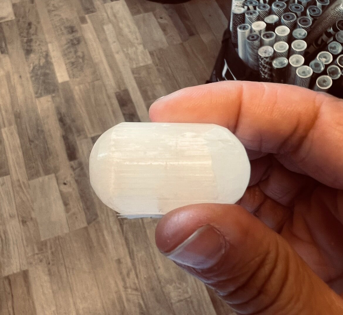 Seleniet is een kristalvorm van gips, bekend om zijn vezelige structuur en satijnachtige glans, ook wel satijnspaat genoemd. Het wordt vaak wit, maar kan ook andere kleuren hebben zoals geel, oranje en rood. Seleniet wordt in de spirituele wereld gebruikt voor reiniging en opladen van andere edelstenen, en wordt geassocieerd met positieve energie, heldere geest en het bevorderen van contact met engelen en gidsen.